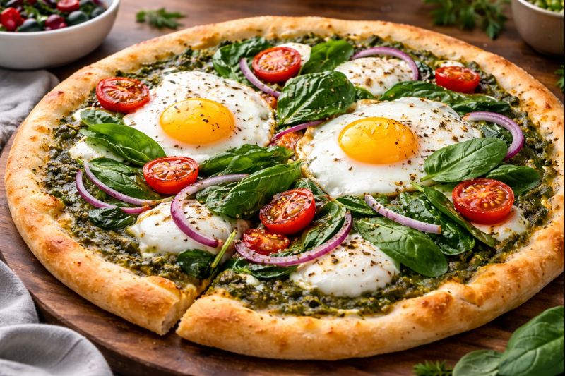 8. Pesto Mozzarella Egg Pizza