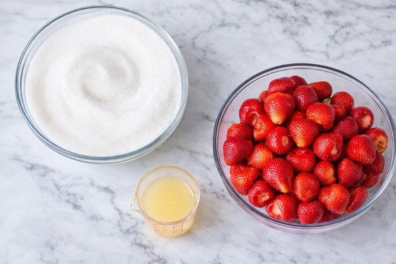 - Just 3 simple ingredients – fresh strawberries, sugar, and lemon juice. No additives, no preservatives, and nothing hard to find.